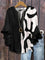 Abstract Pattern V-neck Frill Half Sleeve Loose Blouse