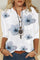 Floral Print Buttons V-neck Half Sleeves Blouse