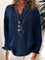 Women Plain Solid Button V Neck Casual Cotton Long Sleeve Blouse
