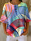 Women's Colorful Short Sleeve Stripes pattern Print Casual Cotton Shirt