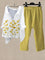 Women's Yellow Flower Print Shirt Collar Top And Casual Pants Linen Two Pieces