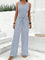 Striped V Neck Sleeveless Casual Summer Cotton Jumpsuit