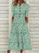 Paisley Stitching Notched Half Sleeve Pocket Midi Dress