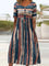 Stripe Print Casual Short Sleeve Round Neck Midi Dress