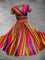 V-neck Retro Rainbow Stripe Print Short Sleeve Casual Dress