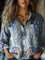 This long-sleeved, ethnic-style shirt is made from soft polyester fabric, featuring a neat lapel design and a comfortable, loose fit. The all-over print gives it a vintage and casual feel. It can be paired with a geometric necklace and high-waisted jeans and ankle boots, or with a cotton and linen skirt and loafers, and layered with a knitted vest for added dimension. It's perfect for shopping or traveling in spring and autumn, offering both comfort and style.