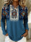 Vintage Ethnic Print V-neck Long Sleeve Casual Blouse