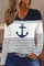 Nautical Anchor Print Striped V-Neck Long Sleeve Casual T-Shirt