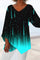 V-neck Black Graphic Tops Long Sleeve Printed Irregular Hem Blouse