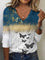 Vintage Butterfly Printed V-Neck Blouse