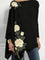 Stylish Embroidered Rose Boat Neck Long Sleeve Casual Blouse