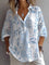 Floral Print Lapel 3/4 Sleeve Casual Loose Blouse