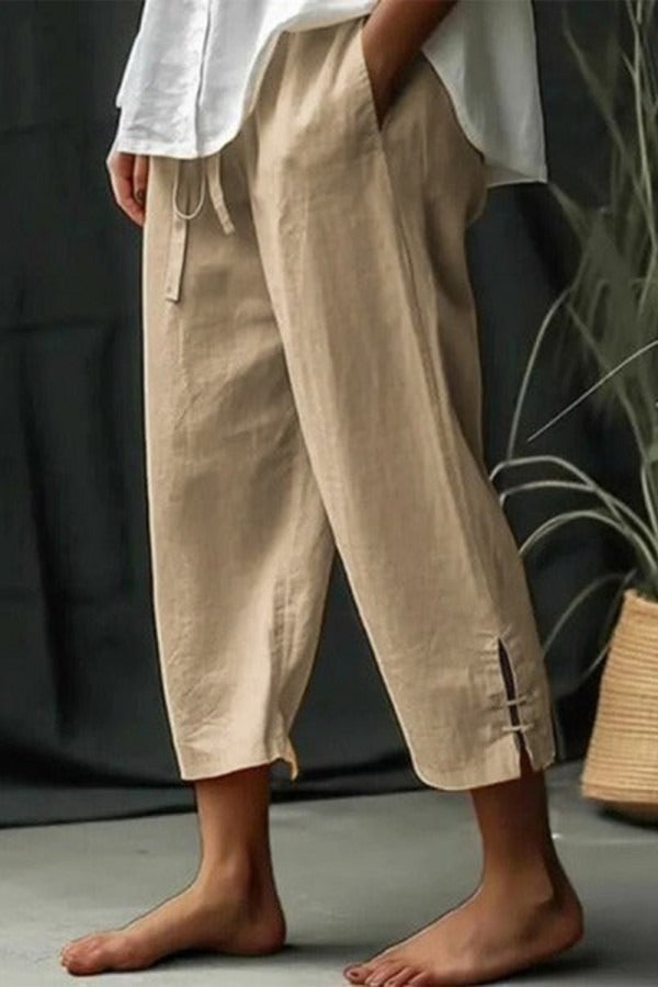 Lässige, einfarbige Freizeithose mit elastischem Bund