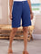 Navy Blue Plain Pockets Buttons Casual Shorts