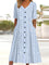 Blue Striped V Neck Short Sleeve Midi Dress