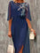 Chiffon Crew Neck Half Sleeve Embroidery Midi Dress