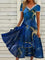 Deep Blue Casual V Neck Printed Short Sleeve Dress