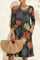 Leaf Print Crew Neck 3/4 Sleeves Loose Midi Dress
