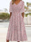 Pink Side Pocket V-neck Short Sleeve Midi Dress