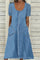 Plain Square Neck Short Sleeve Pocket A-line Casual Midi Dress
