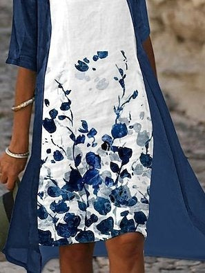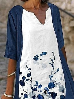 Lässiges, zweiteiliges Midikleid mit V-Ausschnitt und Farbblock-Design in regulärer Passform