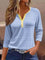 Casual Blue Striped V-neck Blouse