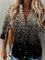 Glitter Print Collared Buttons Long Sleeves Blouse