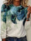 Leaf Print Round Neck Long Sleeve Comfy Blouse