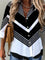 V-stripe Print Collared Buttons Long Sleeves Blouse
