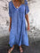 Women's Casual Cotton Linen wi Button Down 1/2 Long Sleeve Lapel V Neck Summer Midi Dresses