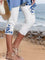 These white and blue floral print cropped leggings are made from a polyester and spandex blend, offering moderate stretch and a soft, comfortable fit. The delicate floral print adds a fresh and elegant touch. Pair them with a loose shirt and sandals for a stroll on the beach, or with a simple T-shirt and canvas shoes for a casual market walk. They're a versatile piece for spring and summer.