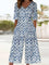 Geometric Print V Neck Half Sleeve H-Line Pockets Casual Jumpsuit