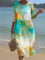 Random Print Casual Crew Neck Half Sleeve Midi Dress