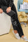 Black Floral Print Embroidery Loose Velvet Casual Sweatpants