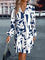 Effortlessly modern, this blue abstract print shirt dress brings an artistic edge to everyday dressing. The loose silhouette and V-neck create an easy, flattering shape that works for city strolls, casual workdays, or weekend outings. Long sleeves add balance to the above-knee length, making it versatile across seasons. Crafted from breathable cotton, it feels soft and natural against the skin while keeping the look polished yet relaxed.