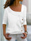 This white long-sleeved shirt is made of soft, skin-friendly fabric. The asymmetrical shoulder and irregular button design are simple yet chic, while the three-quarter sleeves offer a clean and practical cut. It can be paired with wide-leg pants for a professional look, or with shorts and white sneakers for a casual style, or even with a satin skirt for a date.