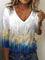Casual V Neck Ombre Sweatshirt