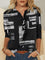 This black abstract print shirt is made of a smooth, flowing fabric. The casual brushstroke print and half-button placket create a relaxed, modern feel. The loose, dropped-shoulder design is comfortable and easy to wear, perfect for spring and summer. It can be paired with jeans for a casual street style, or layered with a blazer for a more professional look, making it suitable for various occasions.