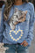 Blue Casual Cat Printed Round Neck Long Sleeve Sweatshirts