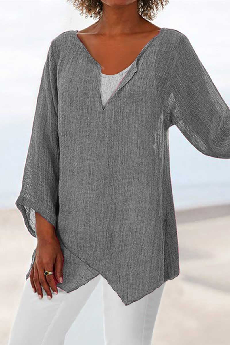 Women's V-neck Solid Color Irregular 3/4 Sleeves Blouse