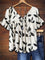 Leaf Print V Neck Ruffled Short Sleeved Top