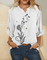White Stand Collar Print with Buttons Casual 3/4 Sleevess Blouse
