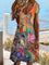 This women's short-sleeved, knee-length printed dress is made of soft, skin-friendly polyester fabric, offering a cool and breathable feel. The V-neck design flatters the neckline, and the floral and abstract art print adds a vibrant touch. It can be paired with a metal necklace, woven sandals, and a straw bag for a vacation look, or layered with a denim jacket and white sneakers for a street style. It's suitable for various occasions, including beach strolls and casual city outings.