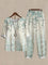 Women's Leaves Print Half Sleeve Top And Casual Pants Linen Two Pieces